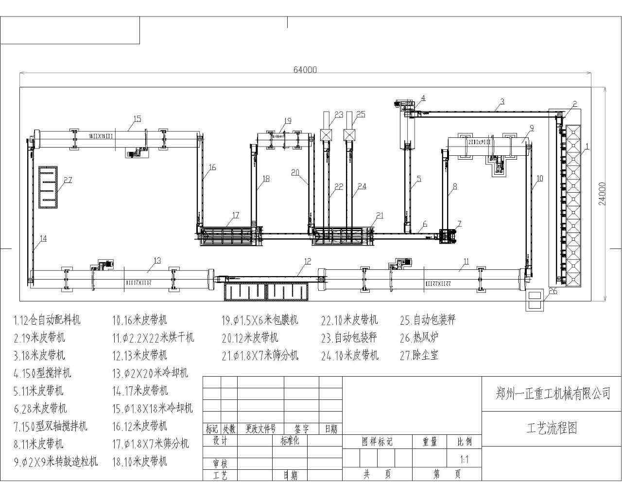 新疆客戶年產(chǎn)5萬噸有機(jī)肥生產(chǎn)線流程圖