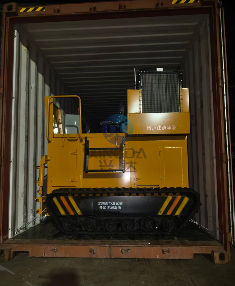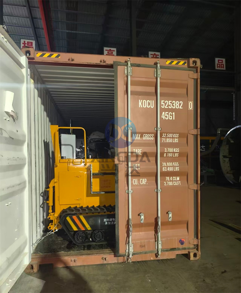 一臺為海外客戶打造的的有機肥設(shè)備履帶翻拋機正在裝箱準(zhǔn)備出貨