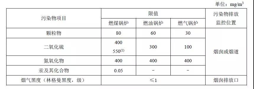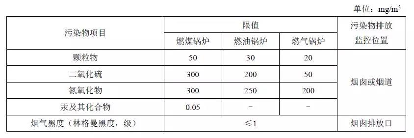 表3 重點(diǎn)地區(qū)鍋爐大氣污染物特別排放限值(GB13271-2014)