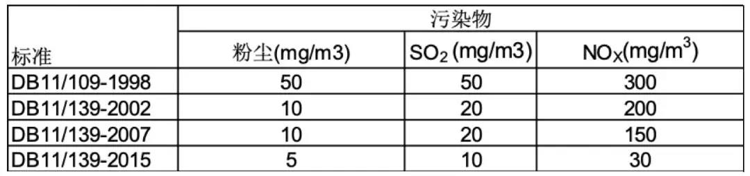 表6 北京市新建燃?xì)忮仩t大氣污染物排放標(biāo)準(zhǔn)變化歷程